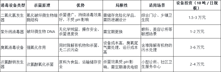 針對不同類型的小型醫(yī)療機(jī)構(gòu),需匹配差異化的處理技術(shù)路線,主流工藝及適用場景如下: