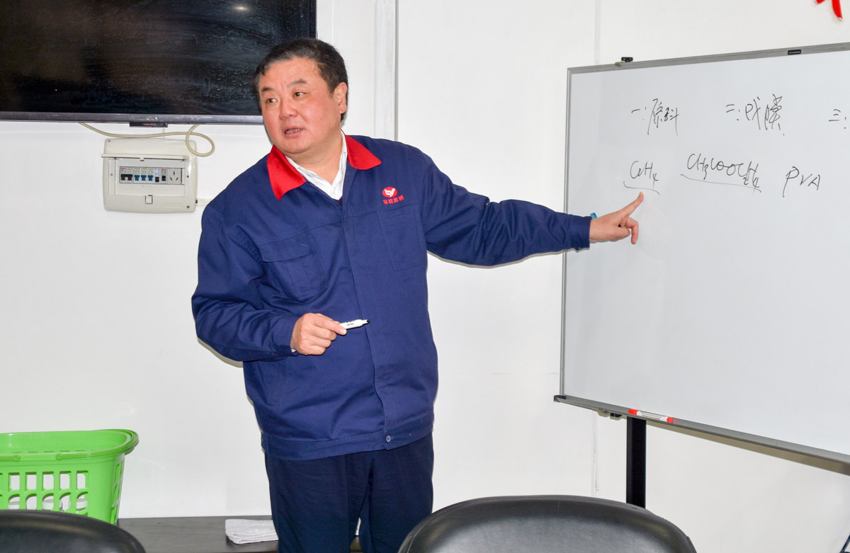 會后,葉傳柏前往PVA膜分廠,實地察看了產品生產過程。