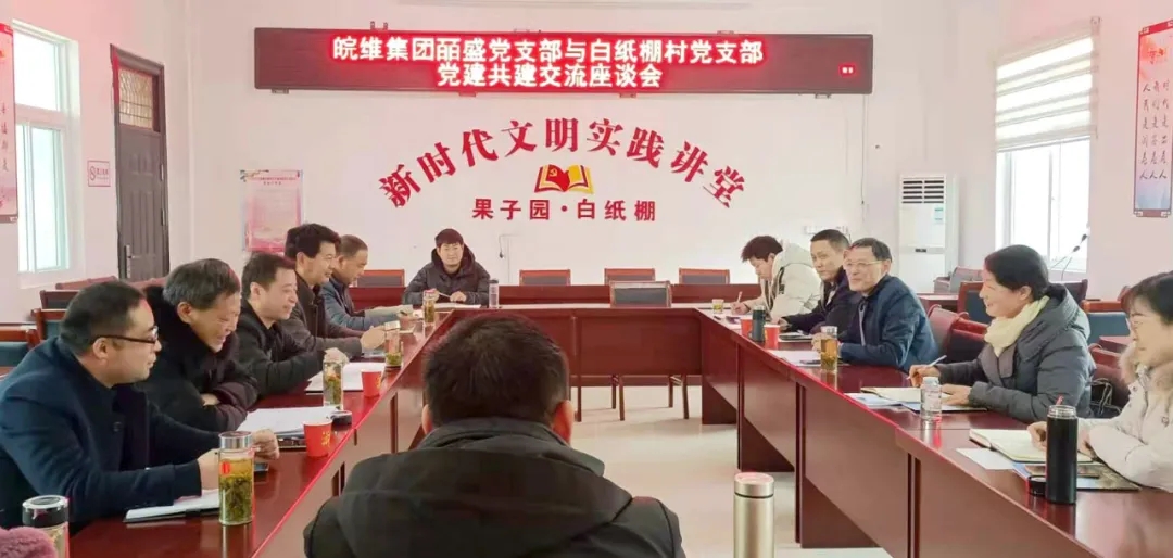 沈小罡談到,此次白紙棚村之行,目的是使雙方通過學習交流不斷開創基層黨組織建設工作新局面。隨后,沈小罡圍繞黨建是如何很低生產這一主題,就皕盛公司全年生產經營、項目建設以及黨建品牌創建亮點等方面做了詳細介紹。他表示,明年是“十四五”發展規劃開局之年,皕盛公司也將貫徹落實集團公司發展戰略,以融入皖維五大產業鏈為目標推動高質量發展,著力攻關汽車級PVB膠片,爭取創新突破,實現“國貨當自強”。
