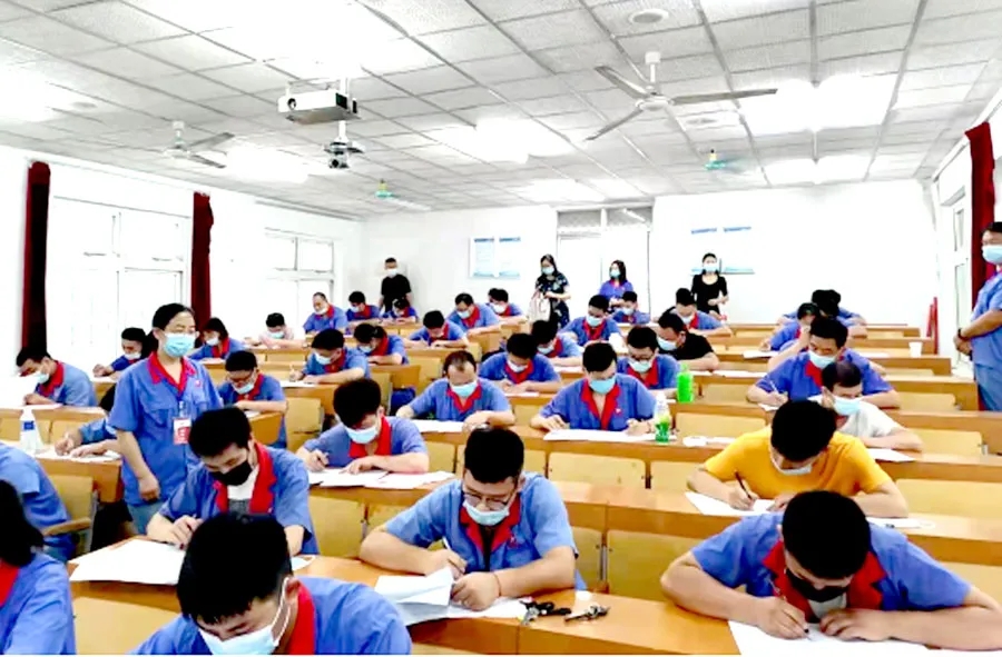 為確保考試順利舉行,公司人力資源部、大維分廠等單位扎實做好疫情防控、考核項目等各項準備工作。2日上午8:30,理論考試在公司技校樓階梯教室正式開始。巢湖市人社局、財政局等3名領導現場督考。