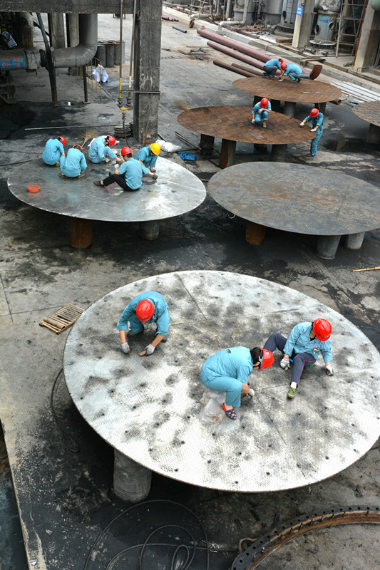 “蓮花”——在有機檢修現場角,圓形的設備宛如朵盛開的蓮花,