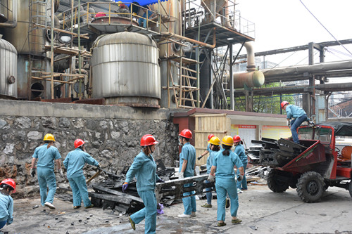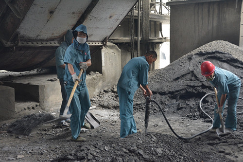 借大修改造之機,水泥分廠對環境進行整治。圖為職工在清理積灰